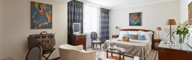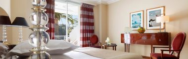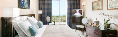 Spacious and decorated with precious wood, the rooms « Prestige Sea View » overlook the bay of Juan les Pins. These luxurious rooms all have a balcony, with a view onto the Lerins Islands, the Esterel and the Mediterranean Sea as a backdrop.